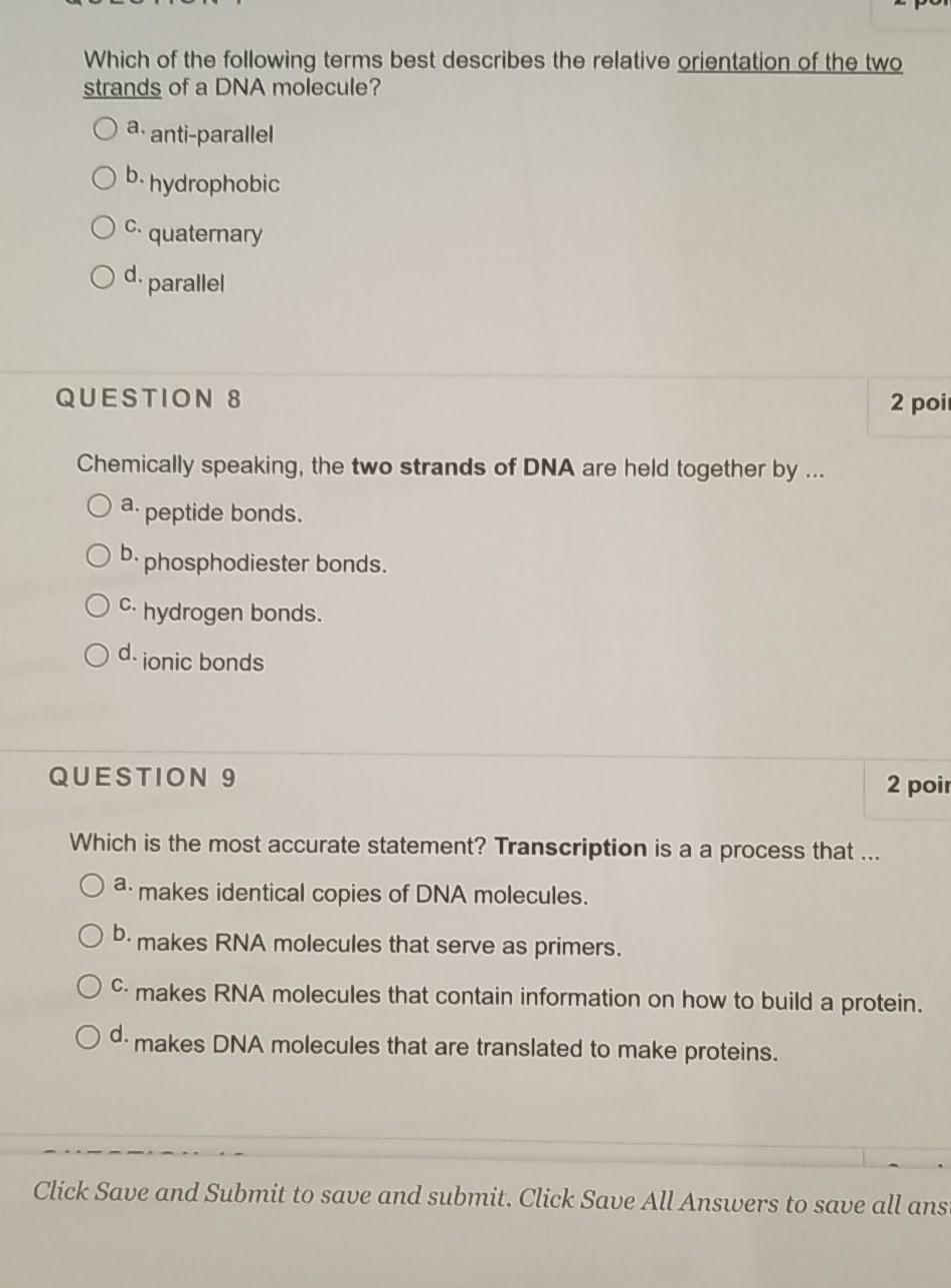 Solved Question 12 1 Point Which Of The Following Statements Best Explains The Mechanism For Dna Replication Dna Replication Is Reductive Because Half The Total Dna Present Is Copied Dna Replication Is Semi Conservative